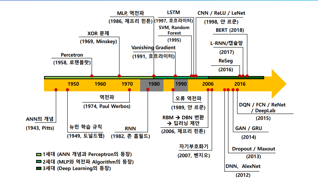 딥러닝 : 여러 비선형 변환기법의 조합을 통해 높은 수준의 추상화 (다량의 복잡한 자료들에서 핵심적인 내용만 추려내는 작업) 을 시도하는 기계학습 알고리즘의 집합